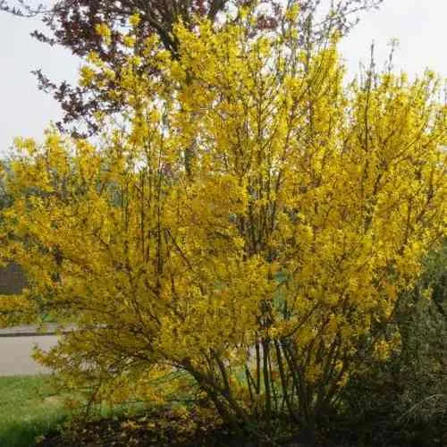 Взрослая форзиция сорта Камсон достигает размера 1,5 м при таком же диаметре кроны. Ежегодный прирост составляет около 25 см.