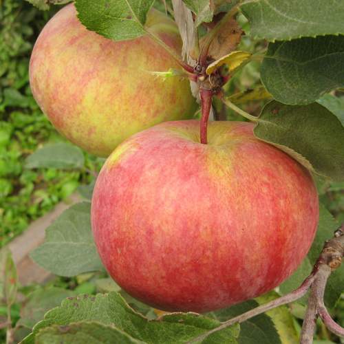 Плоды этого сорта яблони обладают универсальным назначением. Основная окраска плода желто-зеленая с ярким оранжево-красным румянцем на большей части плода. Форма плода округлая. Вес плода составляет 150 грамм, а размер - средний. Кожица плода плотная, гладкая, иногда с белым налетом. Подкожные точки малочисленные и слабозаметные, светлого окраса.